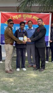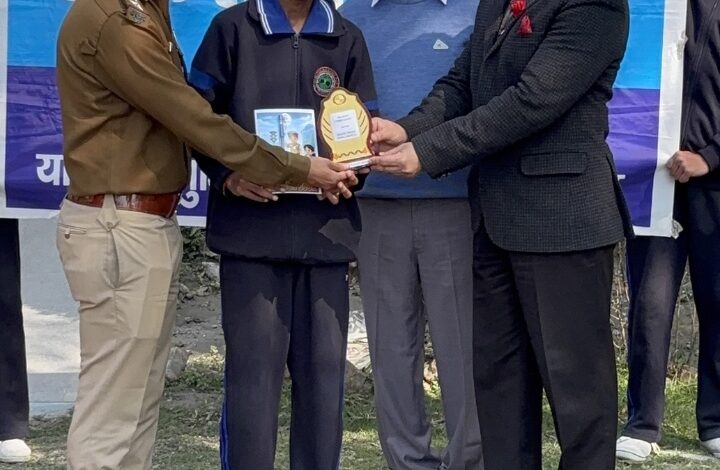 श्री पूर्णानंद पब्लिक स्कूल में यातायात पुलिस द्वारा छात्रों को बांटे गए पुरस्कार।