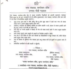 ।। कार्यालयः- नगर पंचायत, स्वर्गाश्रम-जौंक, पौड़ी गढ़वाल ।।