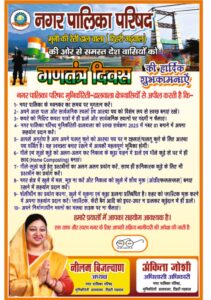 अध्यक्ष नीलम बिजल्वाण ने सभी नागरिकों के सुख, शांति और समृद्धि की कामना करते हुए गणतंत्र दिवस की शुभकामनाएं दीं।