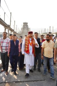 सतपाल महाराज ने नरेन्द्रनगर क्षेत्र में लक्ष्मणझूला पुल के निकट बन रहे 132.30 मीटर स्पान के वैकल्पिक बजरंग सेतु के निर्माण का स्थलीय निरीक्षण किया।